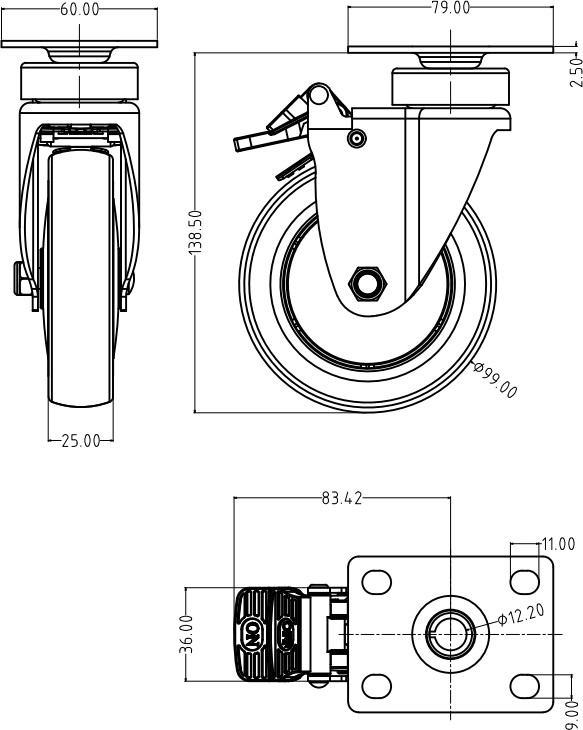 旋轉(zhuǎn)半徑 | 83.42 mm |